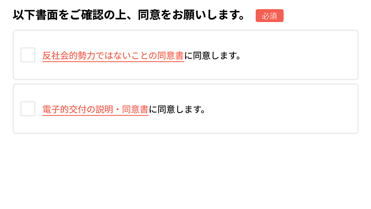 ⑧「契約成立時交付書面」にチェックを入れ「同意する」ボタンをタップ